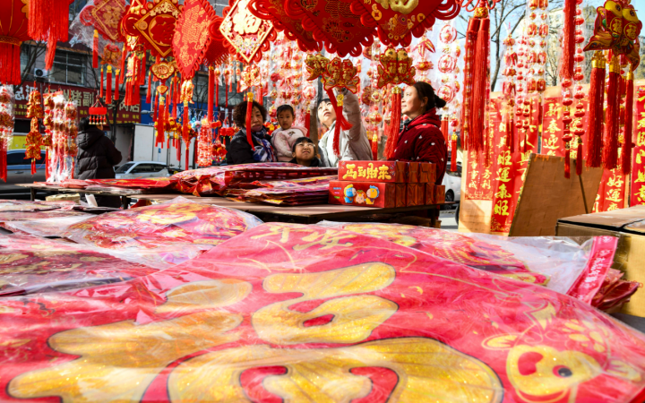 ▲贵府图:人人在选购节庆饰品和年货,管待新春佳节的到来。图/新华社