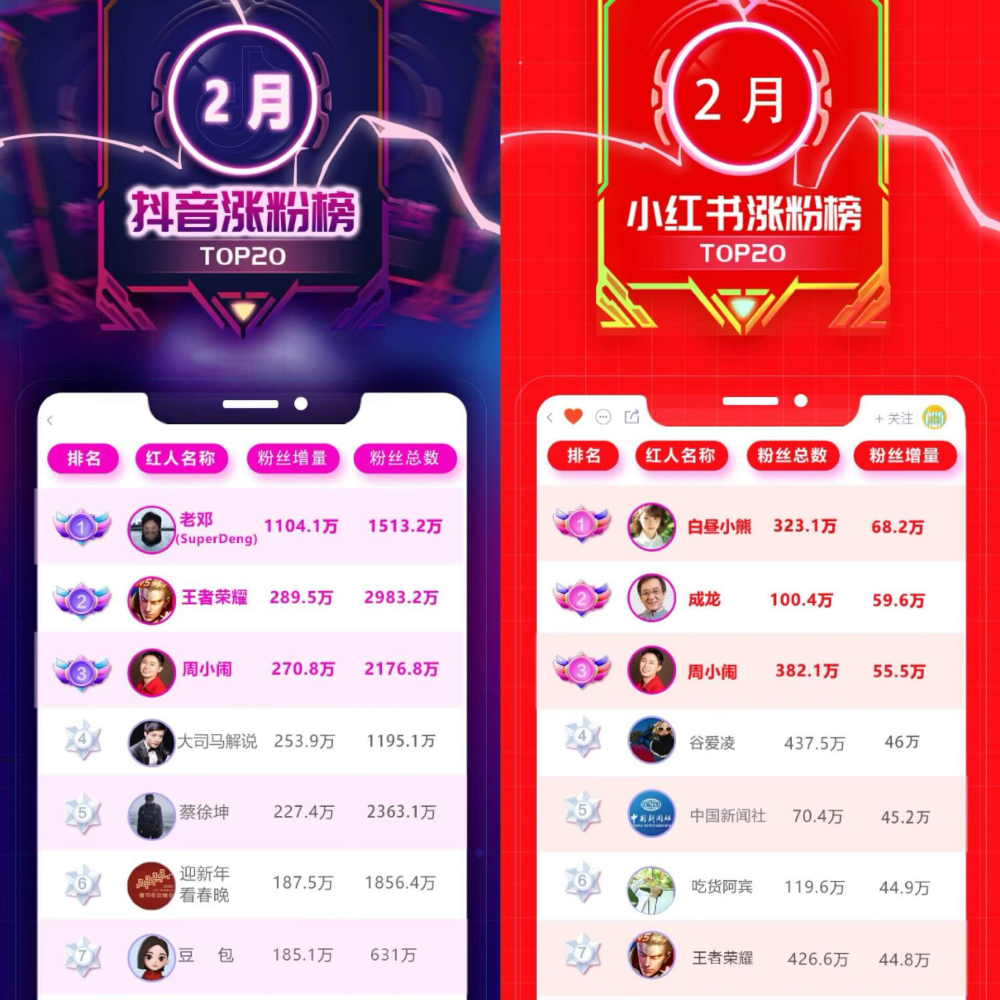 最近两个月,不管是抖音已经小红书的涨粉榜,@周小闹 齐位居前哨,是稀有的双平台顶流,他的本色数据更是让不少头部网红齐直呼“恐怖”。