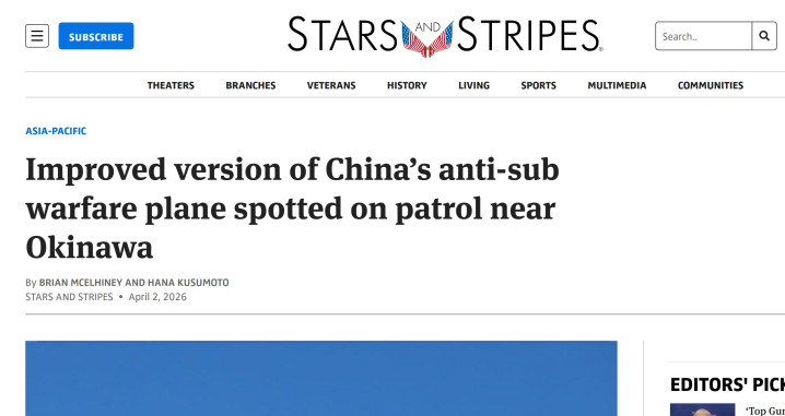 4月2日,好意思国《星条旗报》征引日本统合幕僚监的音信称(见下图),3月29日,日本航空自保队斗争机遨游员近日初次遇到一款彰着历程校正的中国反潜作战飞机。