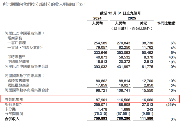 阿里在这一年资格了AI to C的举座转向,不外从财报数据来看,B端商场现时照旧其主要的收入起首。财报中,阿里将AI+云业务别离至云智能集团,这一分部的战术位置还是与阿里中国电商集团和阿里国外数字生意集团皆平。