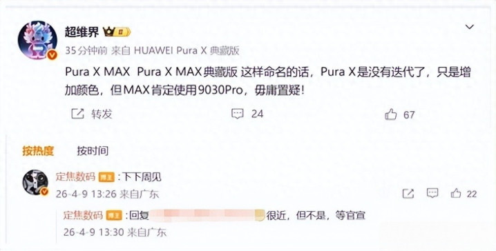 华为折叠屏的新一轮时期迭代,比许多东说念主预期来得更快。最新多方巨擘信源说明,首款搭载麒麟9030 Pro芯片的阔折叠新机Pura X Max,照旧详情将在本年4月下旬进展发布。