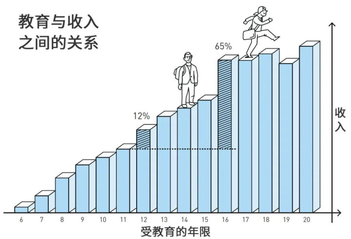 以上说了这样多,是让各人有个学历和收入之间干系性的印象,举座来说:学历越高毕业后工资越高。学历并不单是指所获取的证书,更是指你所吸收西宾的时长,包括你毕业后依然在任时获取的学历。受西宾年数越多,则举座工资收入越多。中西文化、富国穷国、国表里,都有这个规定。