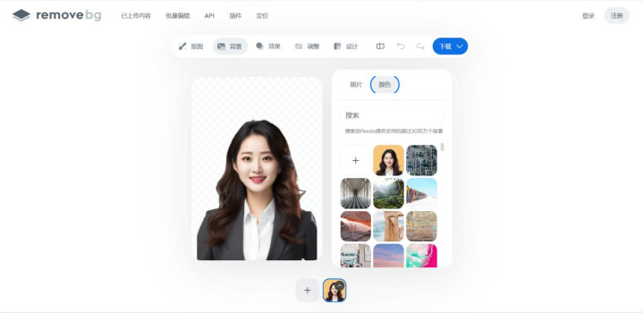 老牌AI器具,专注布景去除,最大上风即是抠图精度高,1寸照的微小发丝、衣物褶皱皆能精确保留,换底后额外当然。操作极简,上传相片自动完成,无谓手动退换。